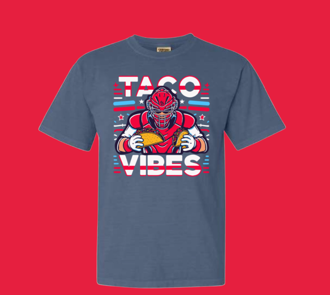 Introducing our exclusive 'STL Baseball Taco Vibes' T-shirt! This premium tee is designed to celebrate the spirit of baseball and the irresistible allure of tacos. Crafted with care, this shirt features a comfortable and durable blend of high-quality fabrics that will keep you feeling cool and confident on and off the field. The eye-catching design showcases the iconic STL logo intertwined with mouthwatering taco illustrations, capturing the essence of both baseball and delicious Mexican cuisine. With its vibrant colors and dynamic visuals, this T-shirt is a must-have for any baseball fan looking to show off their love for the game and their passion for tacos. Whether you're cheering on your favorite team or indulging in your favorite food, let the 'STL Baseball Taco Vibes' T-shirt be your go-to choice for style and comfort. Get ready to hit it out of the park and savor the taco vibes!