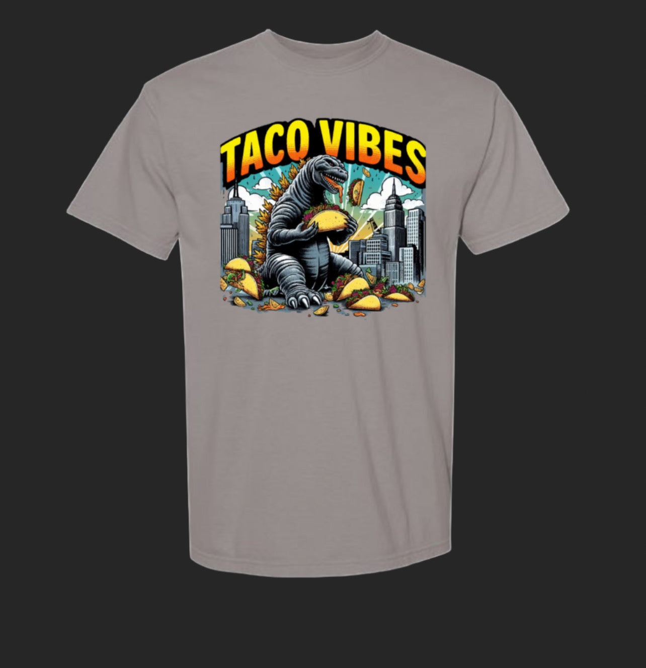 ntroducing our vintage-style masterpiece, the 'Tacozilla' T-shirt! This heavyweight garment-dyed tee is crafted with love from premium ring-spun 100% cotton, ensuring maximum comfort and durability. The design features none other than the mighty Godzilla indulging in its favorite pastime - devouring mouth-watering tacos while wreaking havoc on a bustling cityscape. With 'Tacozilla', you can proudly display your love for both the iconic monster and the irresistible allure of tacos. Let the world know that taco vibes are always in full swing